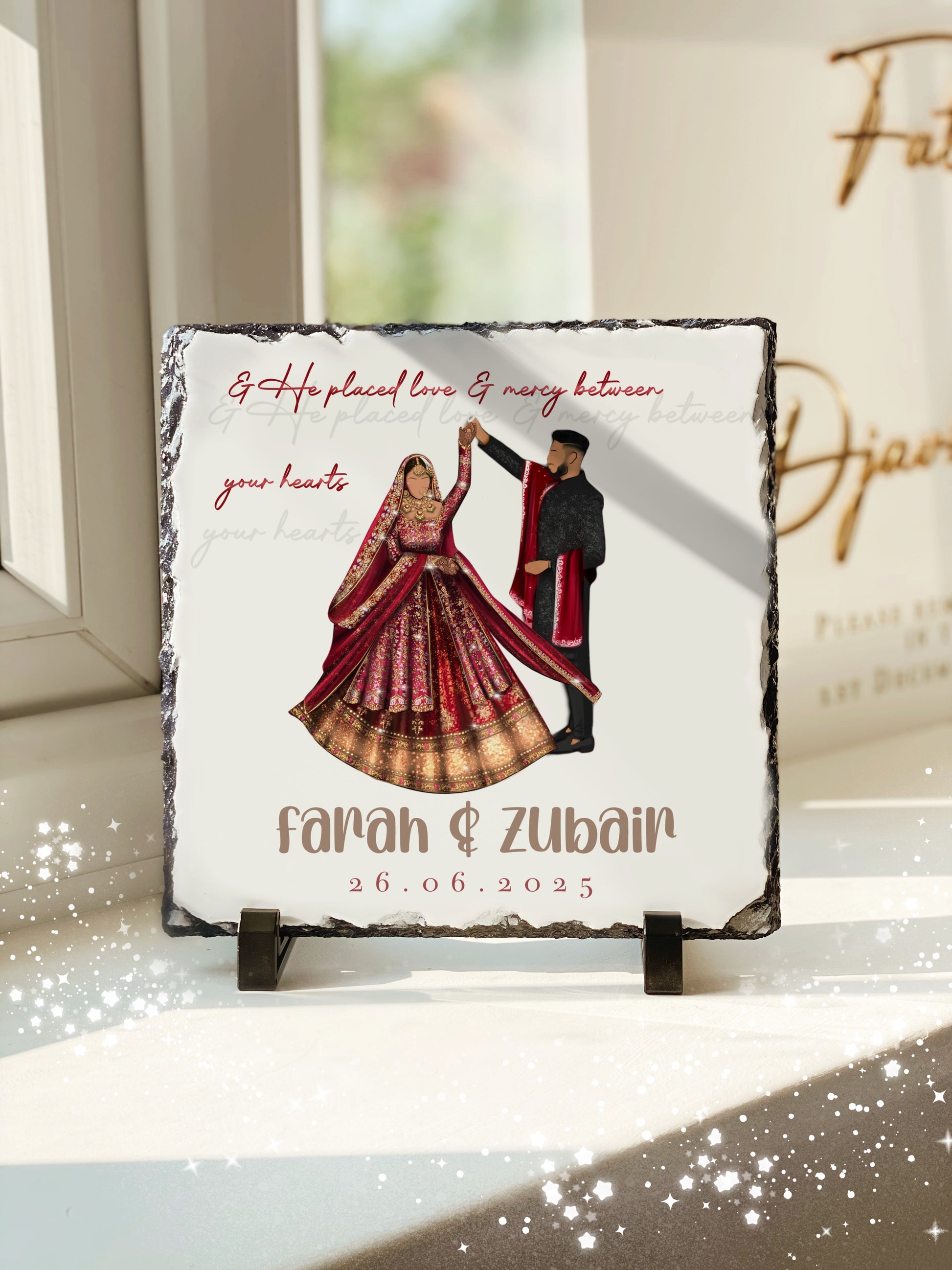 Couples Bridal Spin Slate with Personalised Names and Stand (20x20cm)