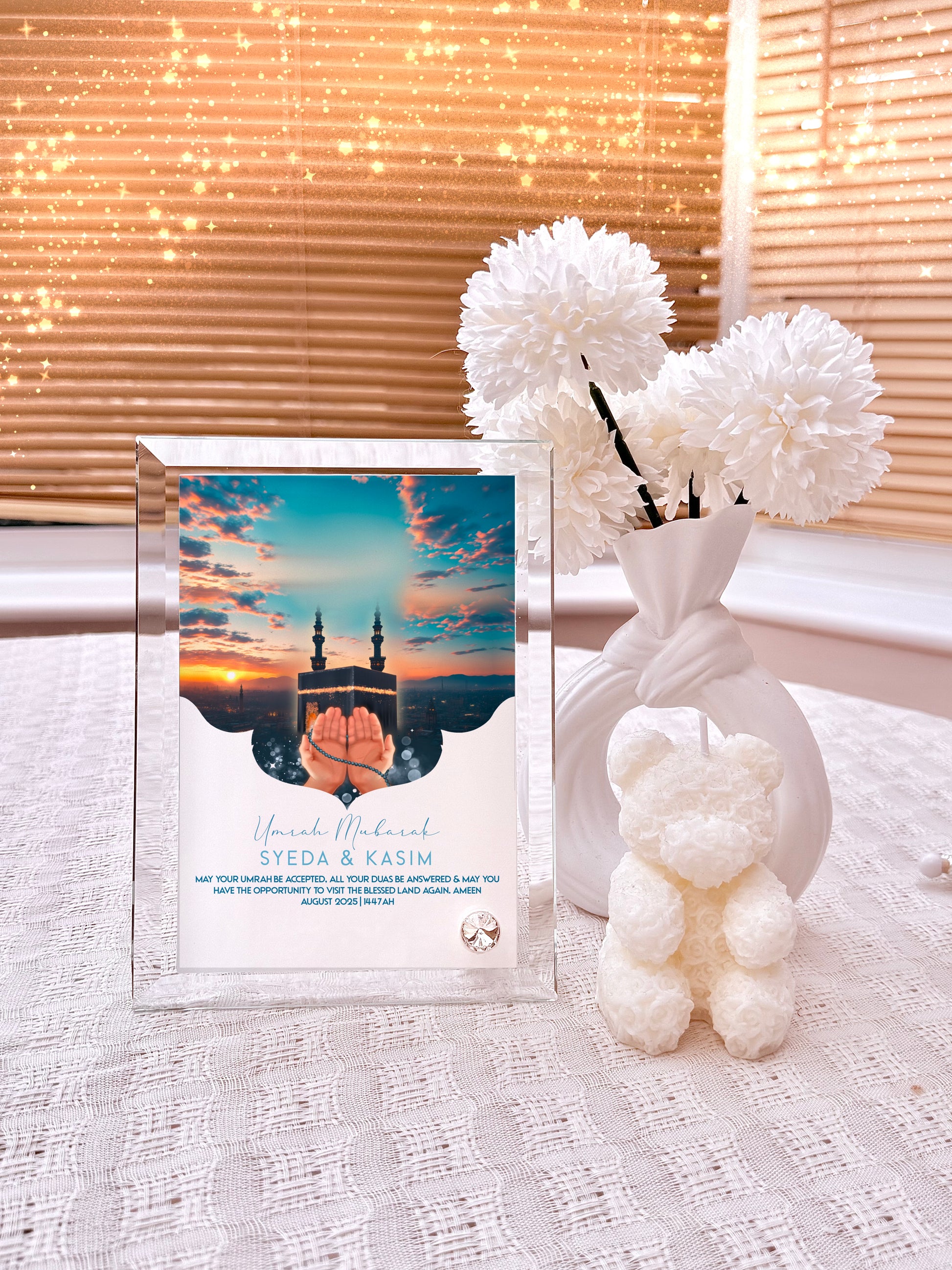 Heavyweight Illustration Umrah Mubarak Crystal Glass Frame 18x13cm
