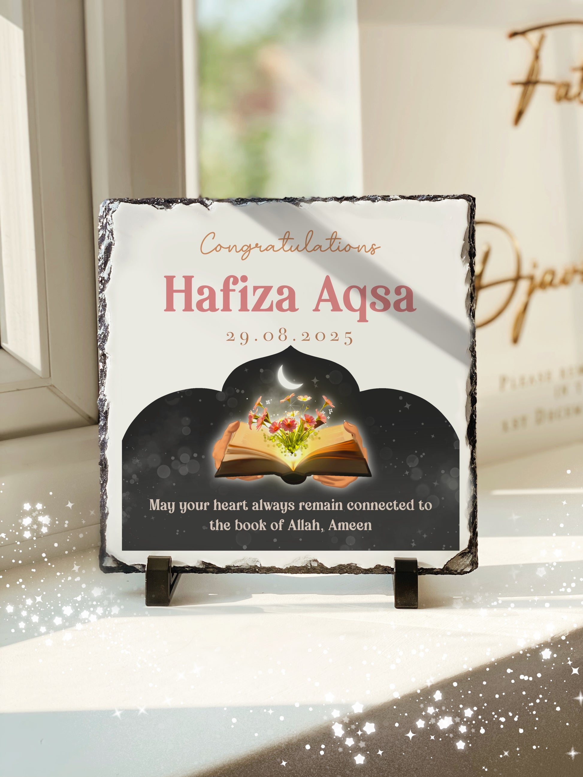 Hifz Hafiza Slate and Keyring Set with Personalised Names and Stand (20x20cm)