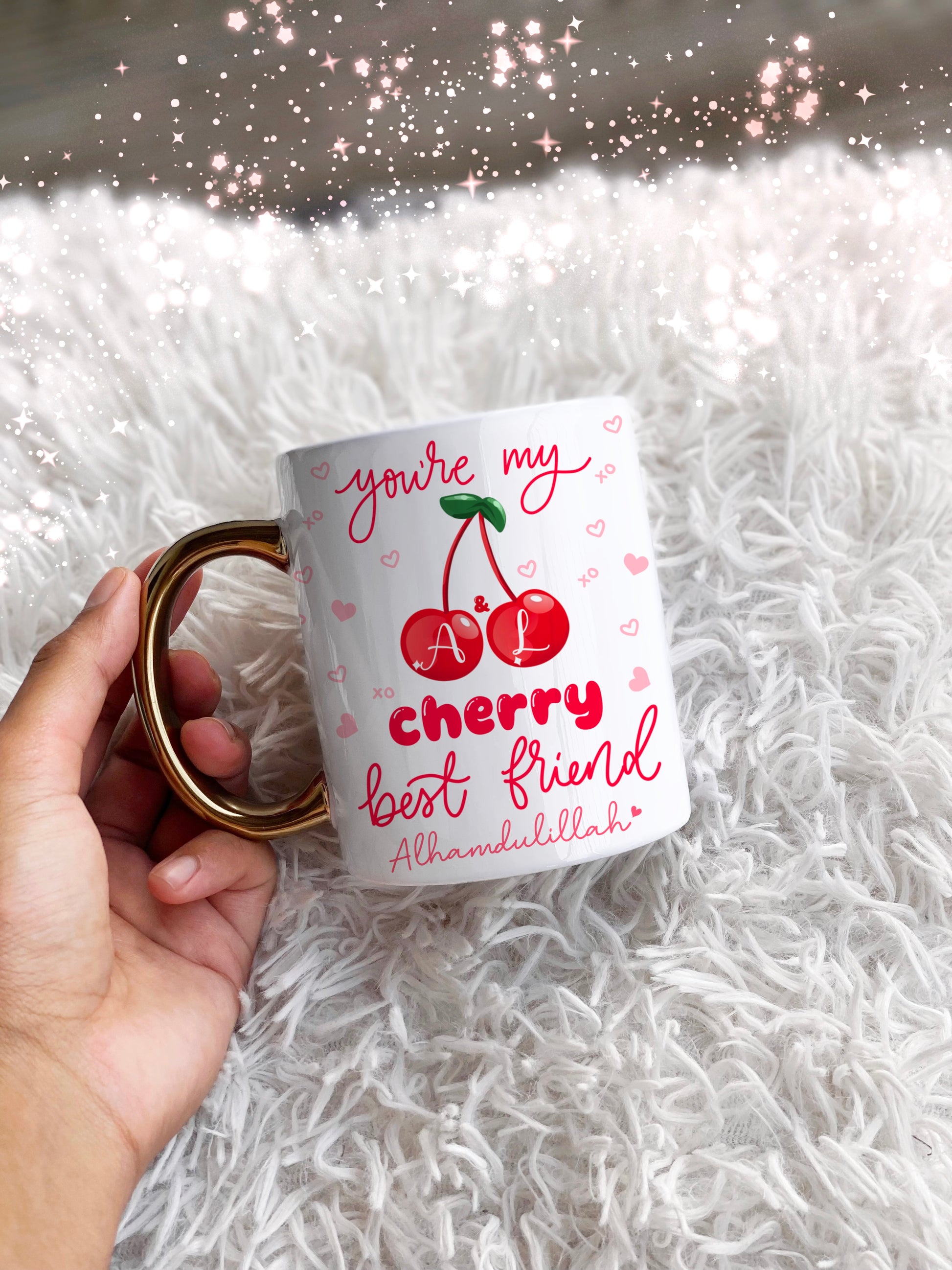 Islamic Cherry Themed Personalised Best Friends Initials Gold Handle Mug