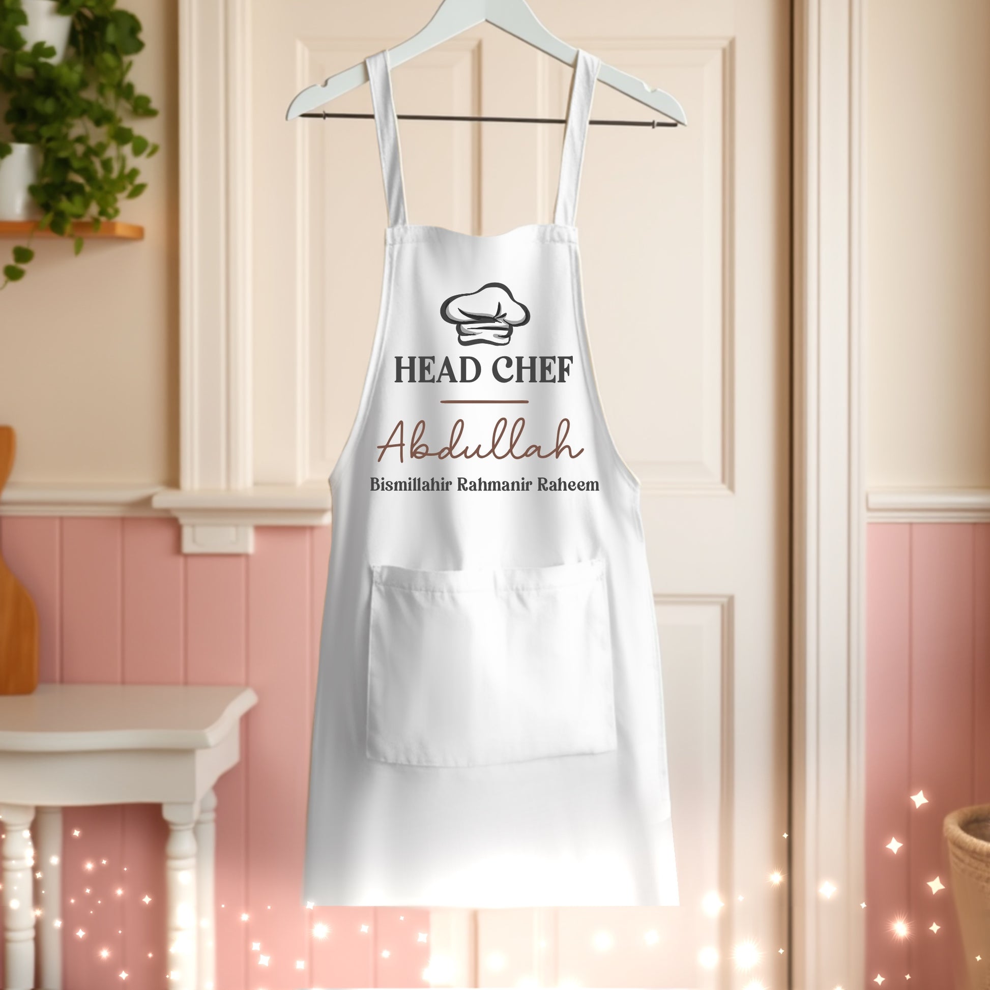 Personalised Islamic Mens White Head Chef Cooking Apron