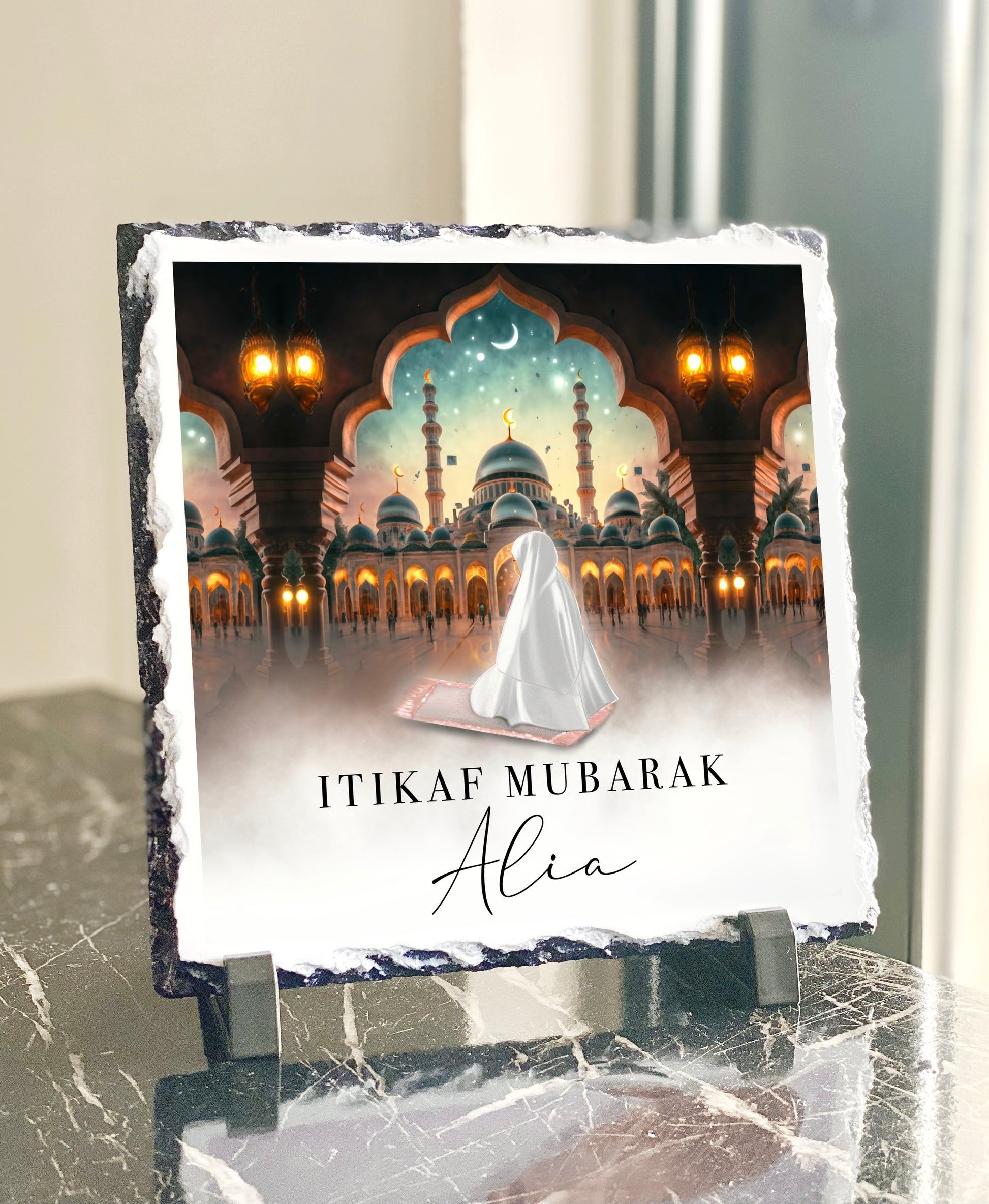 Itikaf Mubarak Ramadan Personalised Womans Slate with Stand (20x20cm)