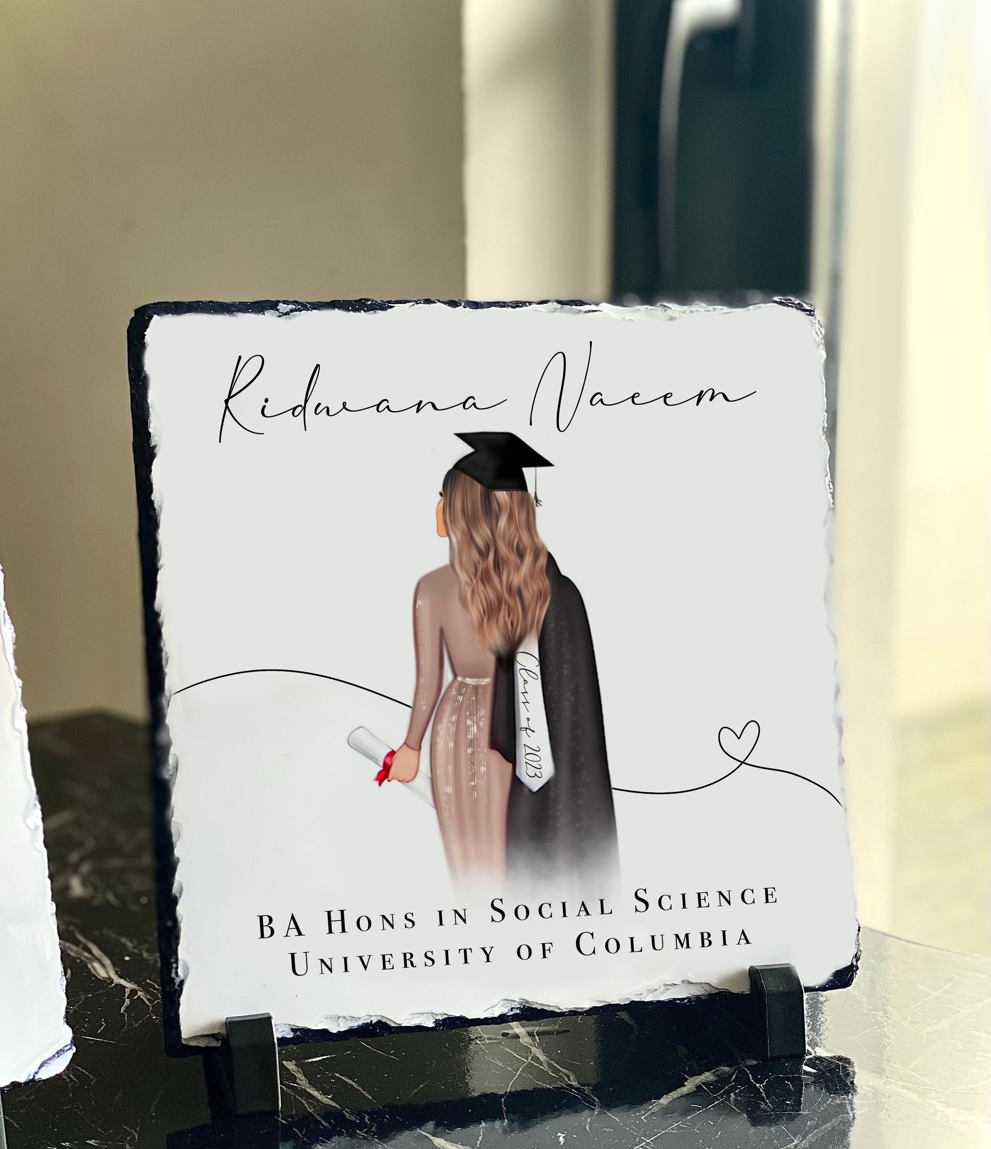 Ladies Graduation Slate with Personalised Text and Stand (20x20cm)