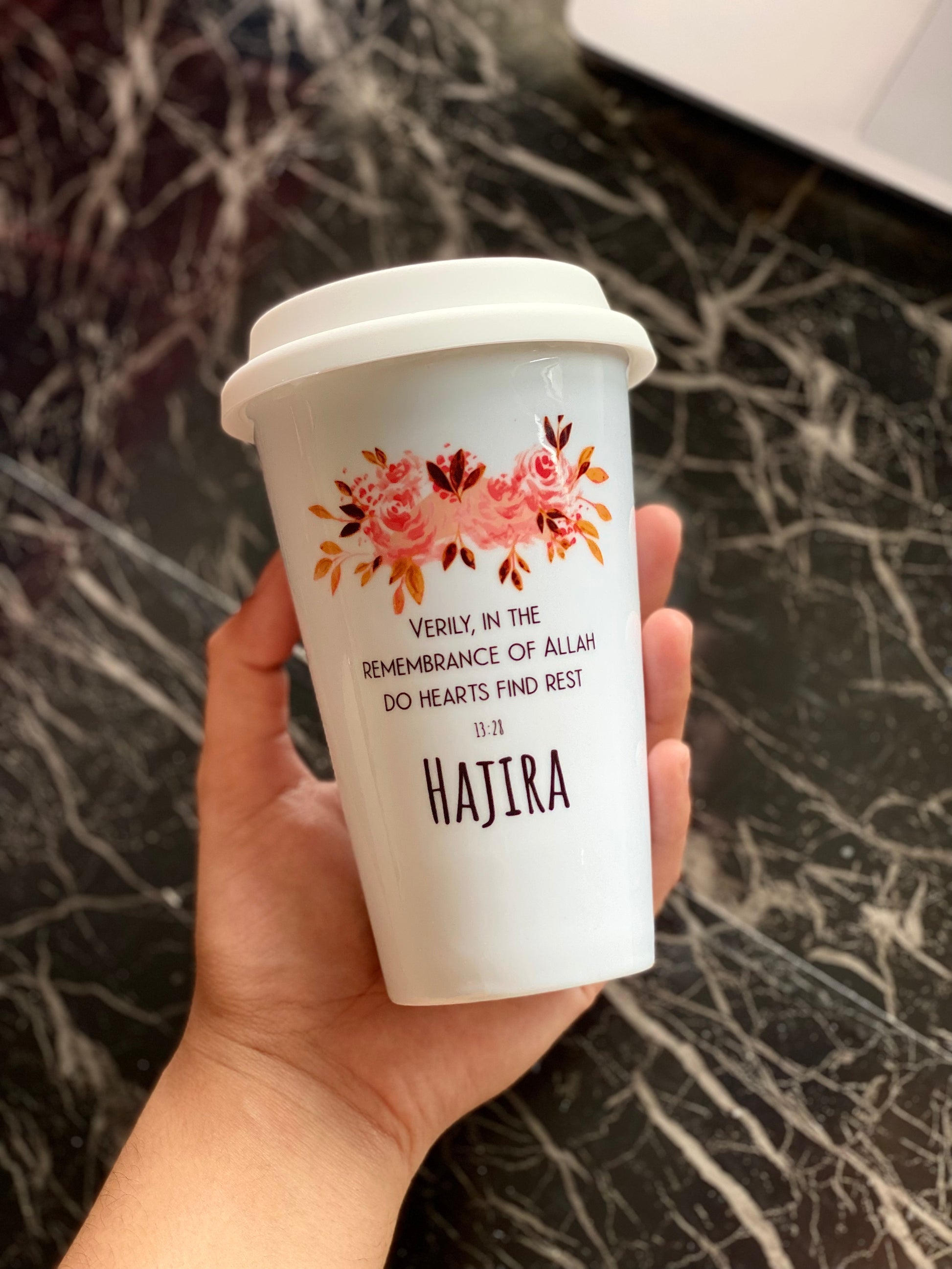 Personalised Name Floral Qur’anic Quote Ceramic Travel Mug