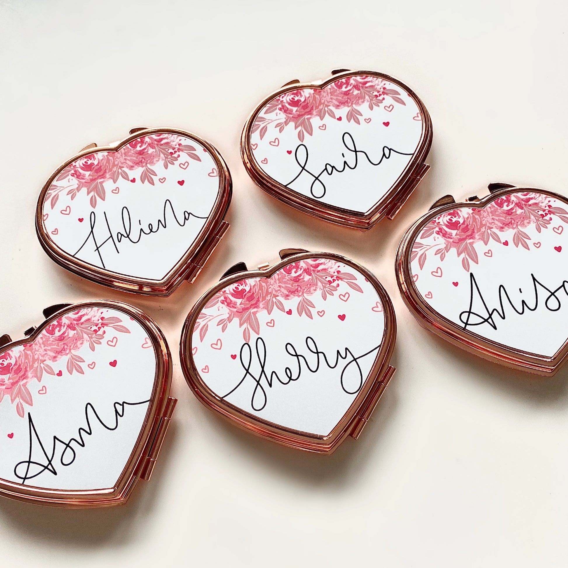 Personalised Rose Gold Floral Compact Mirror
