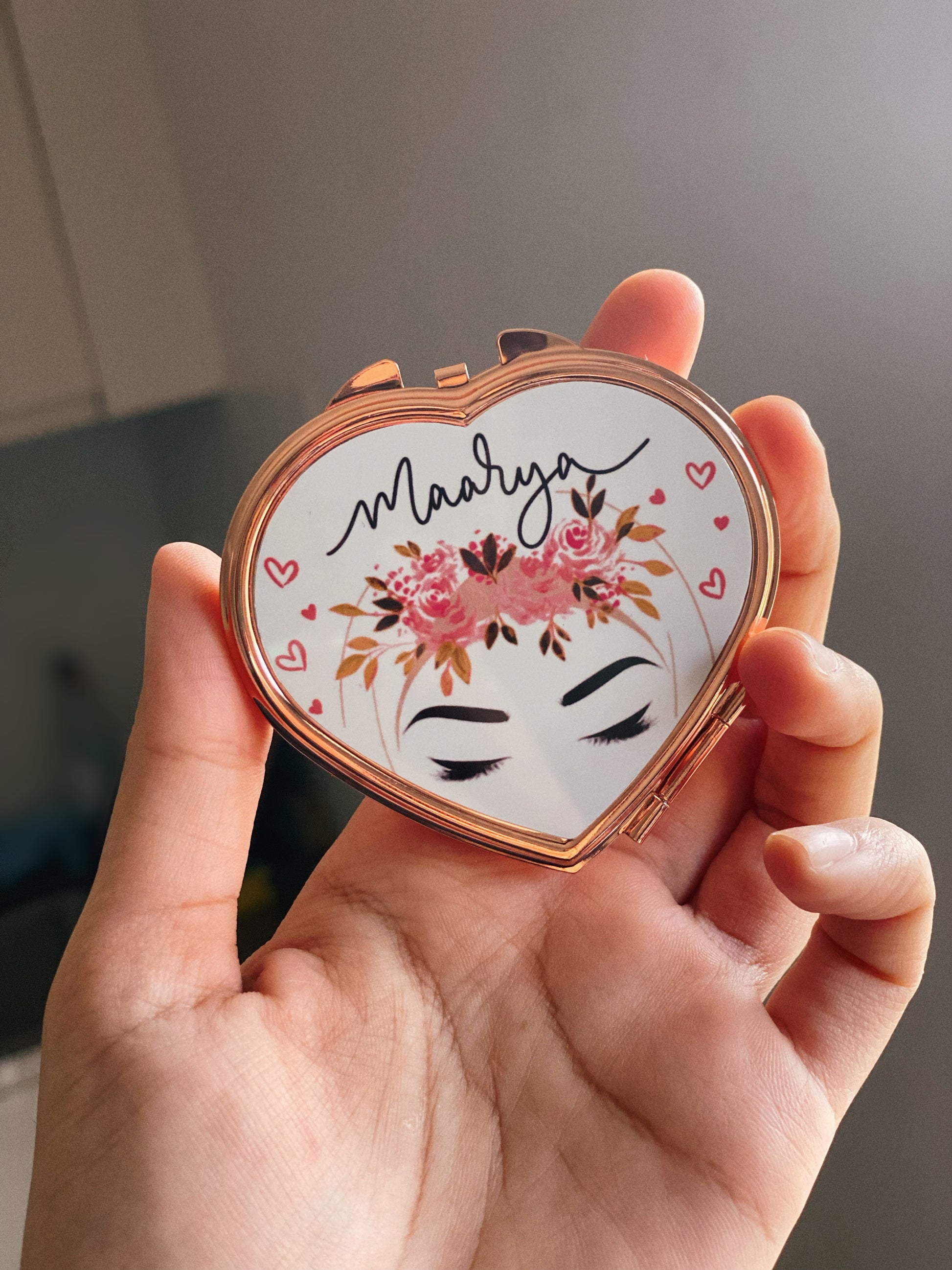 Personalised Rose Gold Floral Hijabi Compact Mirror