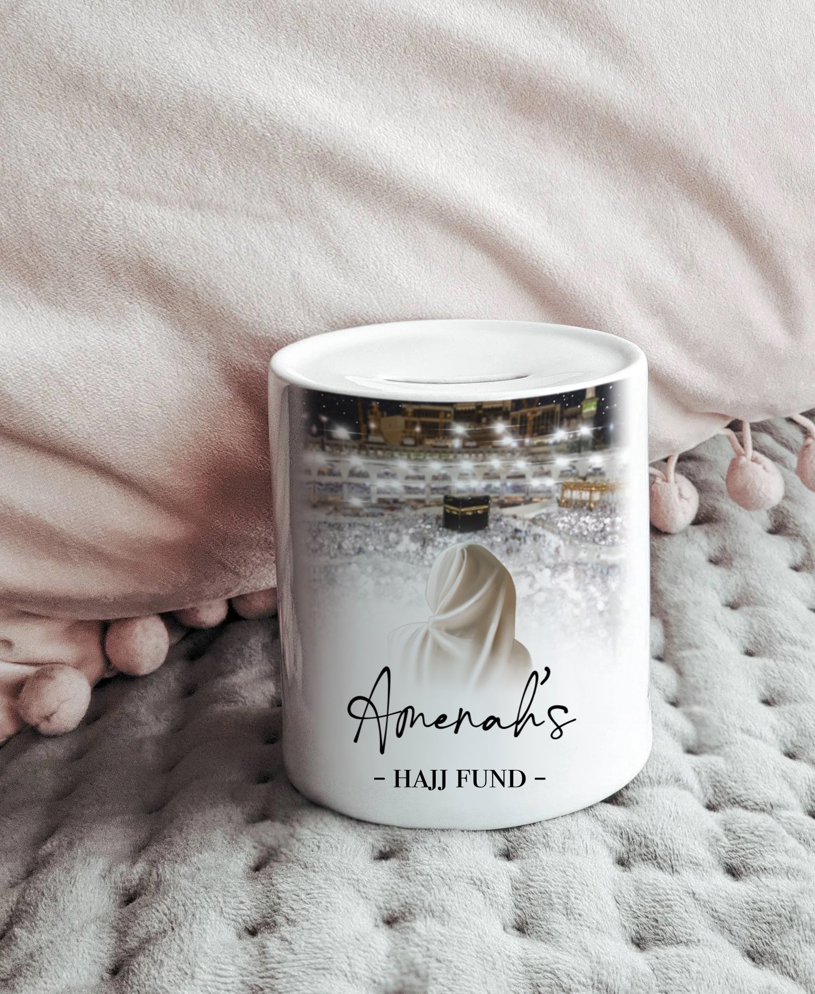 Personalised Women’s Hajj Fund Double Sided Islamic Money Jar with Removable Plug