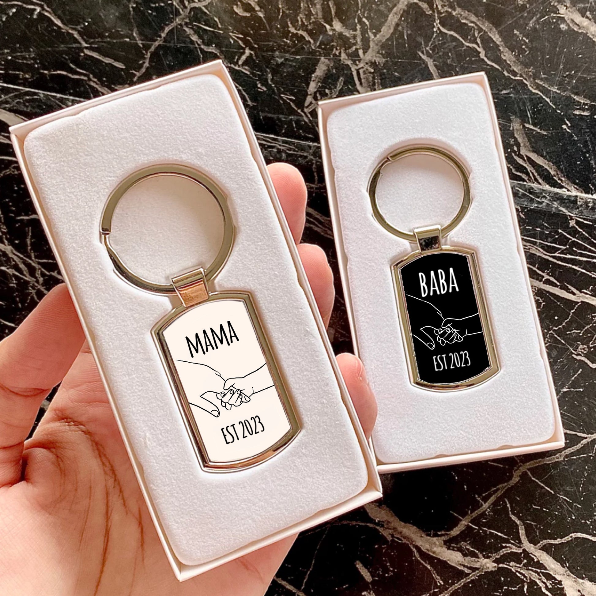 Set of 2 Personalised Parents Metal Keychains with Gift Box